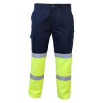 - 265gsm polyester outer, Cotton backed woven for Hi-Vis fluro Yellow fabric (Comply with AS/NZS1904.4:2010) on lower leg, Comfort fit, one side contains large flap cargo pocket, the other a tool & mobile phone pockets,