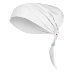 - Mandarin collar with apron tab to hold apron in place.